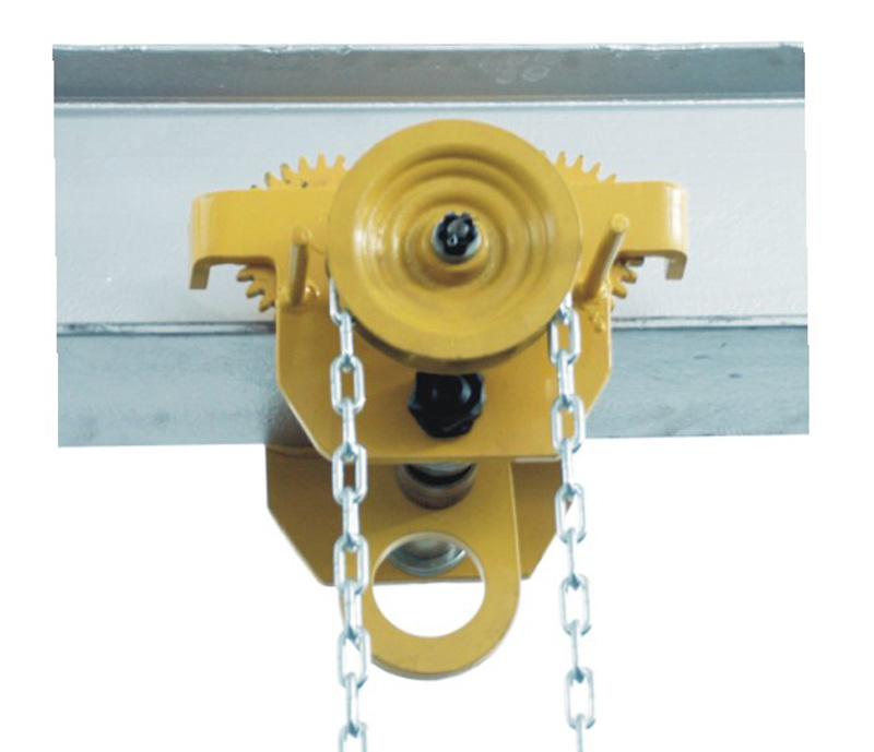 美國(guó)艾培爾GT_系列手拉跑車(chē)以手推吊重物驅(qū)動(dòng),能自如地行走于工字鋼軌的下翼緣上,而且車(chē)輪輪緣間距可以按工字鋼軌道寬度要求調(diào)整,將手動(dòng)葫蘆懸掛在行車(chē)下方,可組成手動(dòng)起重運(yùn)輸小車(chē)。其結(jié)構(gòu)設(shè)計(jì)緊湊精密,是凈空高度有限作業(yè)中的理想工具,裝有改進(jìn)的安全防脫板,使用更加安全。