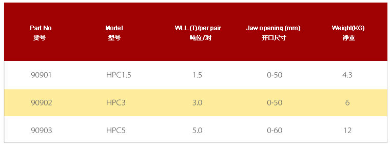 歐威HPC系列橫吊鋼板起重鉗 額定載荷:1.5-5噸.