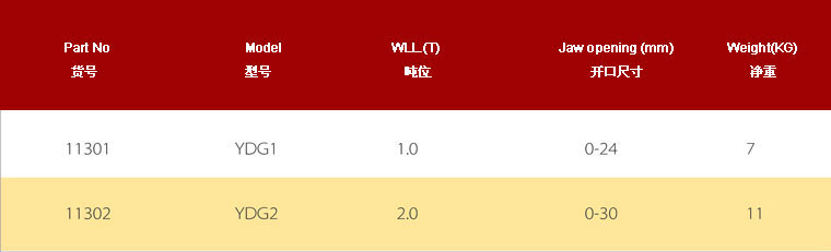 YDG系列剛梁堆放起重鉗 荷載范圍:1-2T.