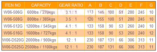 臺灣至光附剎車手搖絞盤技術參數(shù):