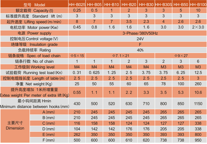 HH-B型三相單速環(huán)鏈電動(dòng)葫蘆具有起升速度快、外形美觀、操作安全可靠等特點(diǎn),尤其具有獨(dú)特的超載安全保護(hù)裝置和電機(jī)熱保護(hù)裝置,使本產(chǎn)品在使用中的安全可靠性達(dá)以最高。本產(chǎn)品可廣泛應(yīng)用于各種輕小型重物吊裝;亦可同架空行車或懸臂吊配套,組成適宜于低空間作業(yè)的物流運(yùn)輸系統(tǒng),是一種改善勞動(dòng)條件、提高勞動(dòng)效率的最佳設(shè)備之一,可選配無(wú)線遙控器。