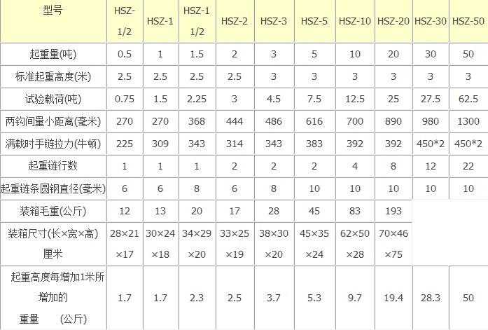 HSZ型手拉葫蘆是一種使用廣泛,攜帶方便的手動起重機械,可用于工業(yè)、農(nóng)業(yè)建筑業(yè)、礦業(yè)等的機器安裝、貨物起吊、車輛裝卸等,尤其適用于露天及無電源作業(yè)。