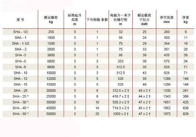 額定載荷 1/2 - 50 tons產(chǎn)品說明: SHA 手拉環(huán)鏈葫蘆在耶魯產(chǎn)品系列中高品質(zhì)和低成本的理想選擇。緊湊設(shè)計和自重輕使得此款葫蘆便于攜帶和易于操縱,非常適合建筑應(yīng)用。