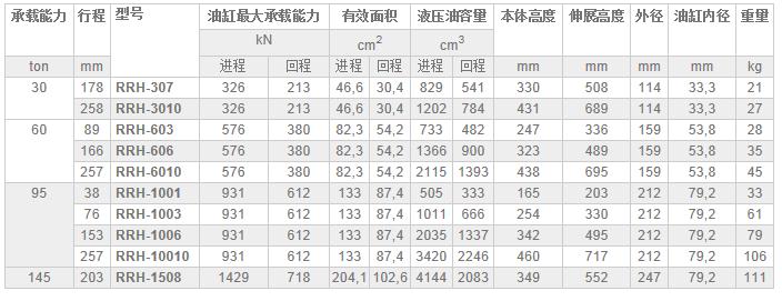 美國恩派克RRH-系列雙作用中空柱塞液壓油缸技術(shù)參數(shù):