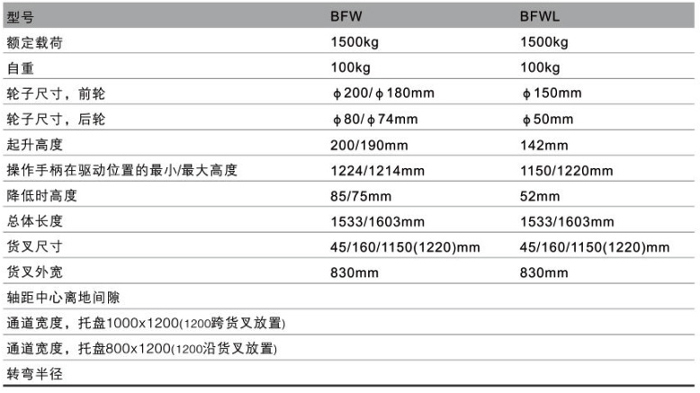 浙江西林BFWBFWL型平板搬運車技術參數: