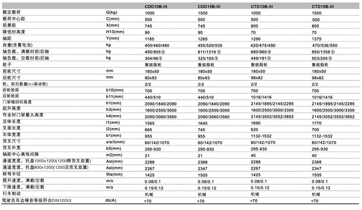 浙江西林CDD10B/CDD15B堆高車技術(shù)參數(shù):