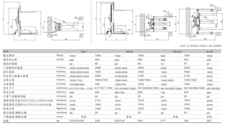 浙江西林SDJ1000-SDJ1500叉車技術(shù)參數(shù):