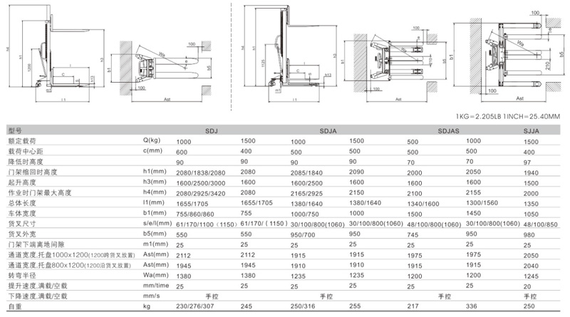 浙江西林SDJAS500/SDJAS1000叉車技術(shù)參數(shù):