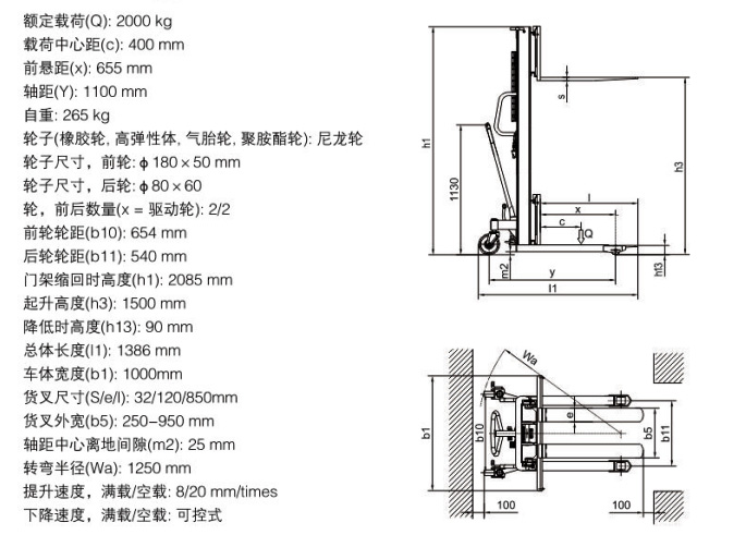浙江西林SJJA1500叉車技術(shù)參數(shù):
